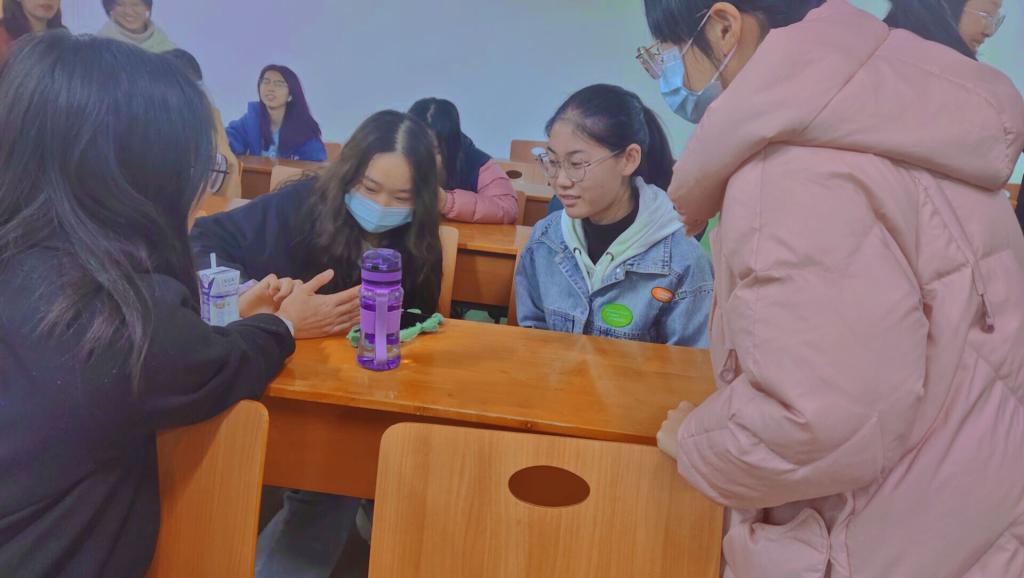 本次团体辅导主要以文体活动为载体,每个班级选择的活动方案都趣味性十足。例如商英12101班投票通过了三个游戏方案,分别是“传数字”、“是或不是”、“青蛙跳水”,商英12102班开展了“爱的抱抱”、“大风吹”、“你画我猜”、“词语接龙”等团体活动......同学们都十分配合,每个人积极参与到游戏当中,活动进行得十分顺利。