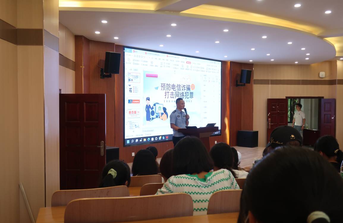 邓锋所长主要围绕预防电信诈骗、打击网络犯罪、宿舍用电用火安全、人身安全等四个方面,详细讲述了电信诈骗、网络犯罪的类型和特点和用火用电安全的关键点,列举了网络诈骗的四个特点,分别是:一、犯罪活动的范围比较大,发展很迅速;二、诈骗手段翻新很快;三、形式集体化、反侦察能力很强;四、是跨国跨境比较突出,提醒同学们一定注意新型骗局,充分突出了预防电信诈骗意识的重要性。此次讲座还强调了,在校老员工在宿舍时,也要注意宿舍安全,比如不乱拉电线,不使用大功率电器等,从日常的小事做起,从身边做起,共同筑牢宿舍安全防火墙。