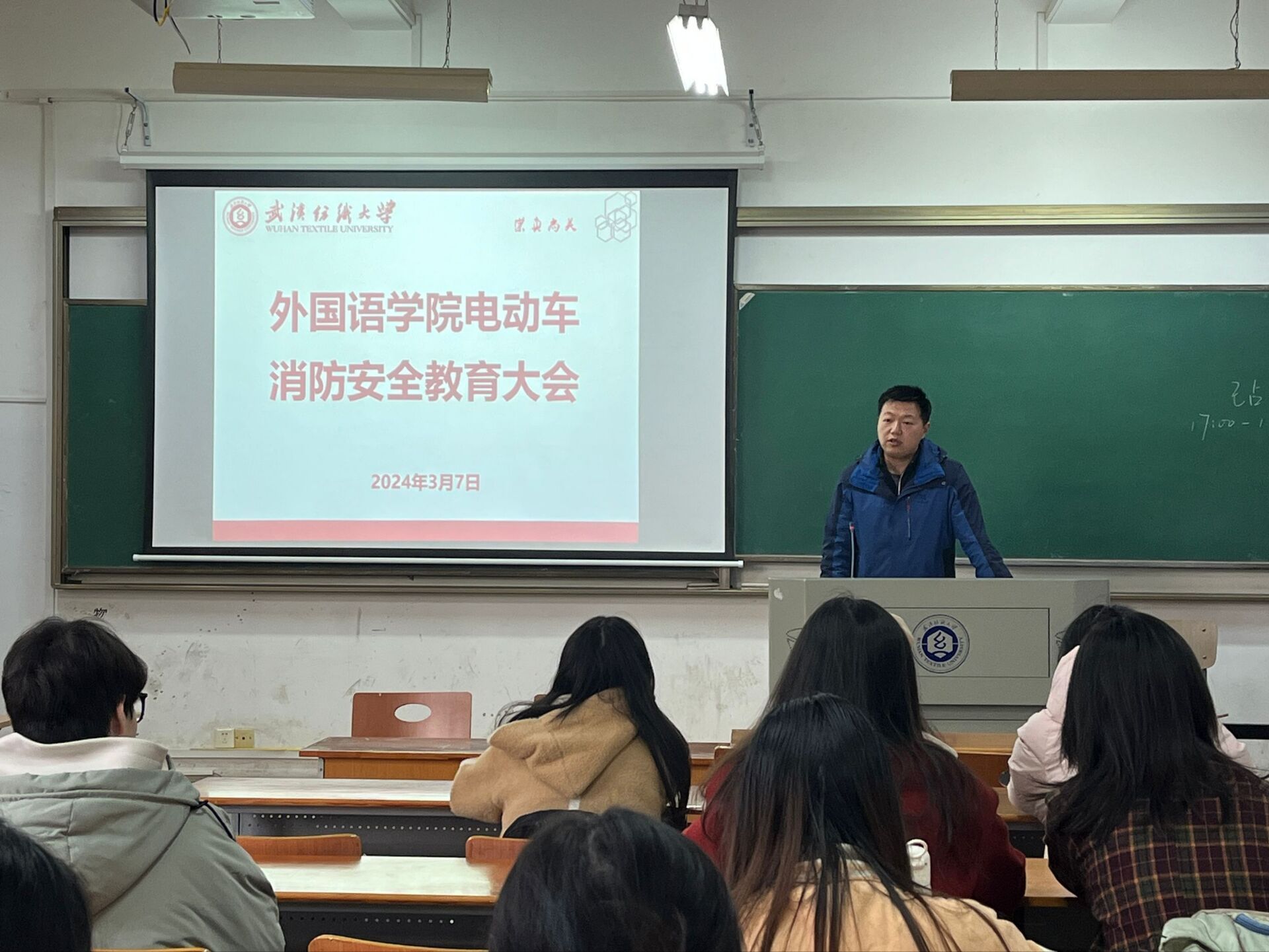 会上,辅导员强调同学们在校园内骑电动车一定要佩戴头盔,不当“低头族”,并为同学们详细介绍了电动车火灾的常见原因和一系列预防措施。其中,特别强调了电动车电池的重要性,指出电池问题是火灾的主要隐患之一。一旦电池出现短路或过热,就可能引发严重的火灾事故。因此,在正确使用充电器方面,辅导员提醒大家要避免过度充电,不使用劣质充电设备,以及在充电时保持充电器处于正常工作状态。此外,辅导员还就充电时的细节问题进行了深入的强调。为了防范潜在风险,辅导员建议同学们不要将电动车电池卸下带入寝室充电,避免在易燃环境中操作。同时,不使用过期或损坏的充电器也成为防范火灾的重要环节。为了确保电动车的整体安全,辅导员还强调了定期检查电动车线路、电池和充电器的重要性,只有保持良好的状态,才能更有效地预防潜在的危险。