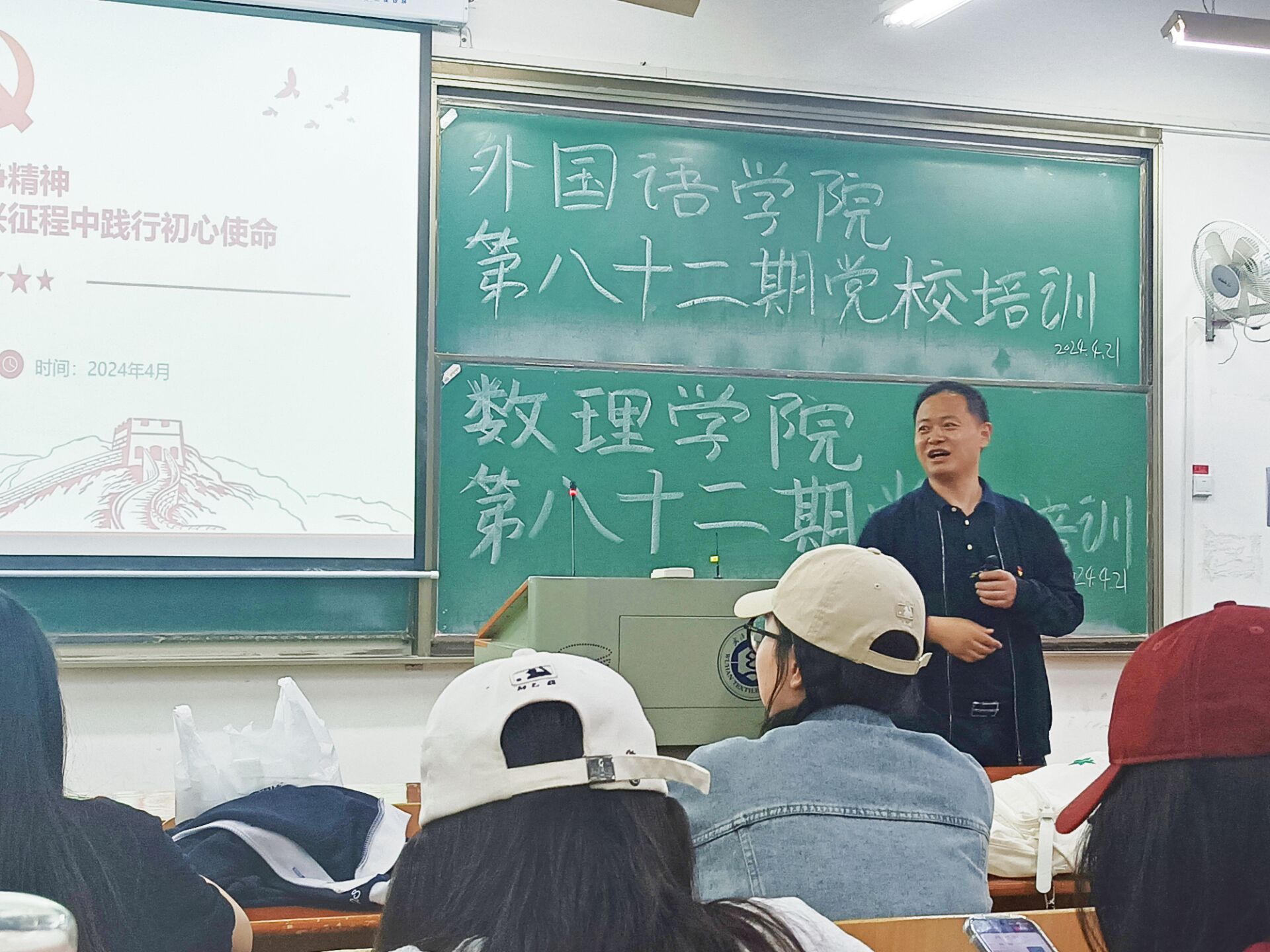 为加强入党积极分子的教育和管理,严把党员发展“入口关”。4月14日晚,yl6809永利集团、数理公司联合在崇文楼120教室开展“弘扬斗争精神:在奋进中华民族伟大复兴征程中践行初心使命”为主题的党课培训课程,此次课程由数理公司党委副书记陈国鹏主讲,全体入党积极分子参加培训。